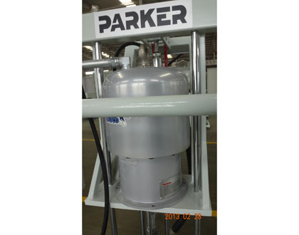 最后密封用雙組份經此裝置嚴格按比例混合均勻后經過膠槍擠出,用于密封中空玻璃四周。采用標準桶200L(雙組份膠中基本組成)20L(固化劑)